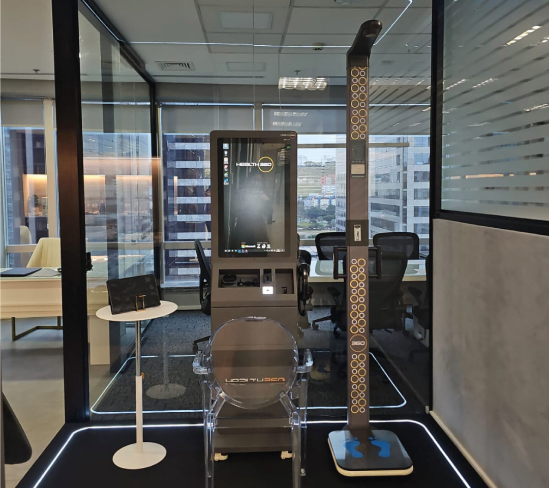 Totens 360: Equipamentos com inteligência para triagem automatizada e integração direta com prontuários eletrônicos.